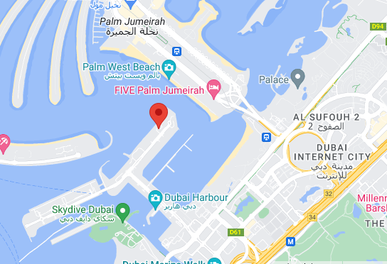 Nachbarbezirke des neuen Wohngebiets und Hotelkomplex umfassen Palm Jumeirah, Dubai Marina und Dubai Media City.