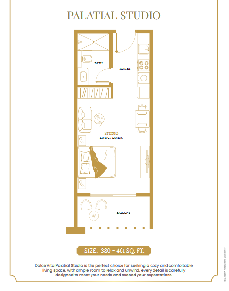 1. PALATIAL STUDIO Startpreis: 603.000 AED. Der Fläche: von 380–461 FT².