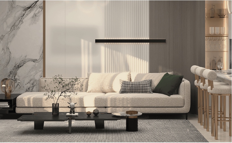Узнаваемая архитектура жилого комплекса выделяется из общей массы сооружений, но в то же время органично дополняет окружающее пространство: бело-бежевые оттенки идеально сочетаются с черно-древесными цветами фасадов. Строгие линии балконов, обрамляющие фасад, подчеркивают динамичность и современность архитектуры.