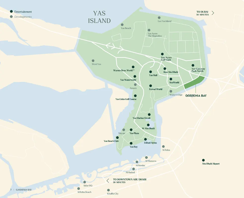 ➡️Комплекс расположен рядом с большим зелёным парком, на берегу канала, на известном своей развлекательной инфраструктурой мирового класса острове Yas.