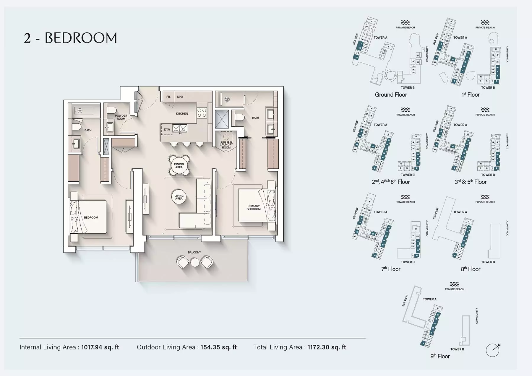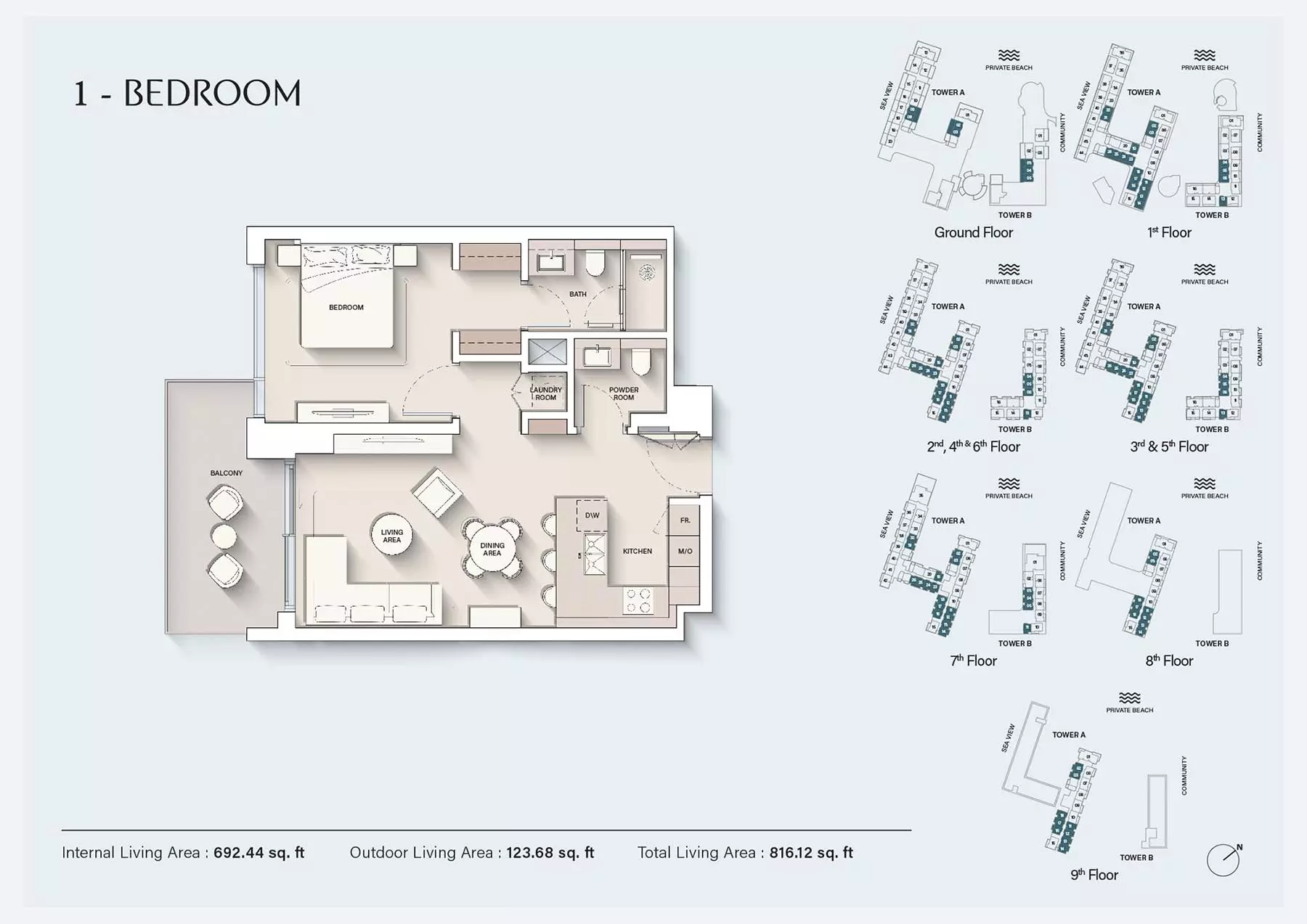 : 1卧、2卧、3卧+顶层公寓