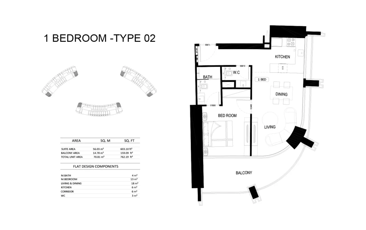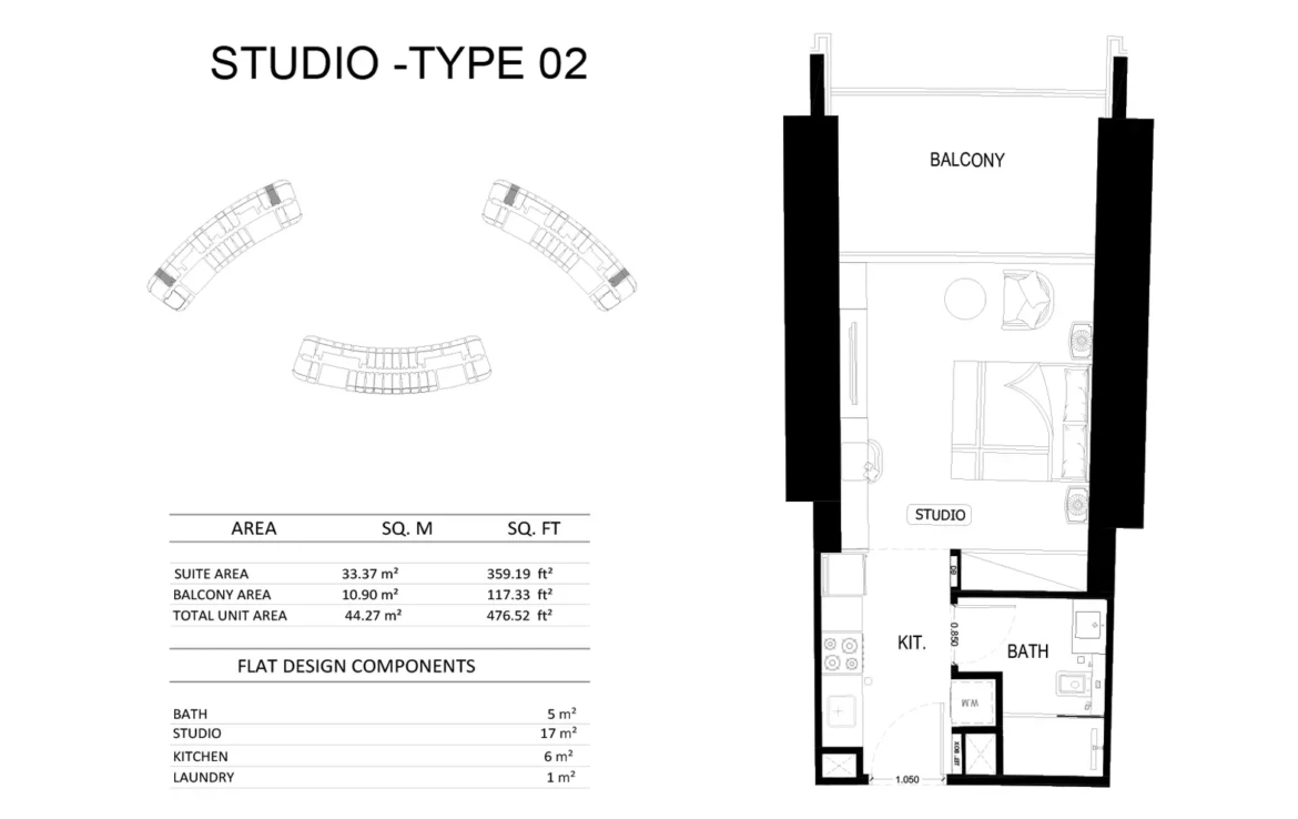 | 开间公寓 | 44 ㎡| 120万迪拉姆起 | 迪拜商业湾一居室公寓入门之选 |
